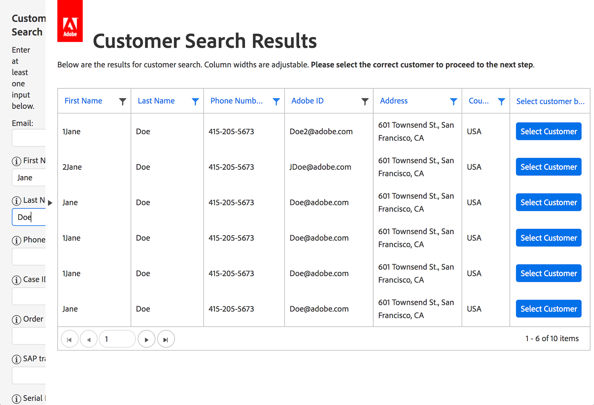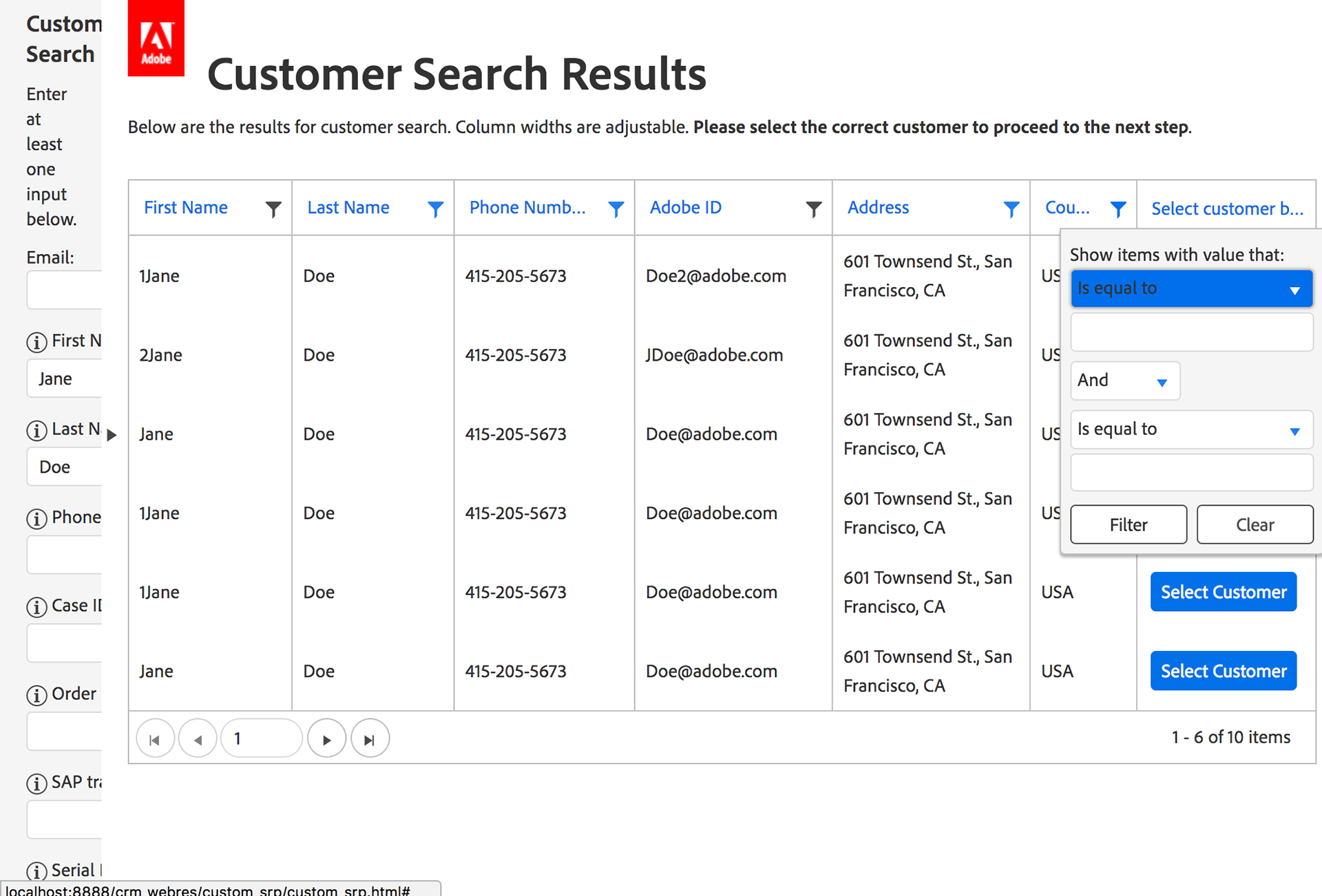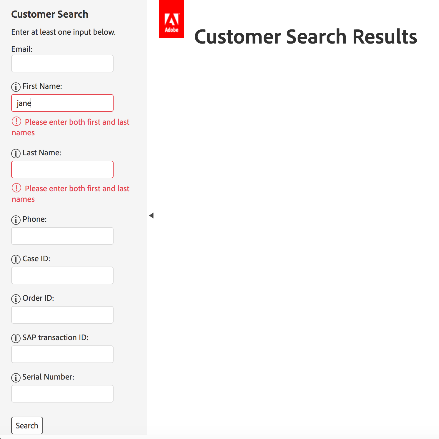 Front-end development for CRM Search